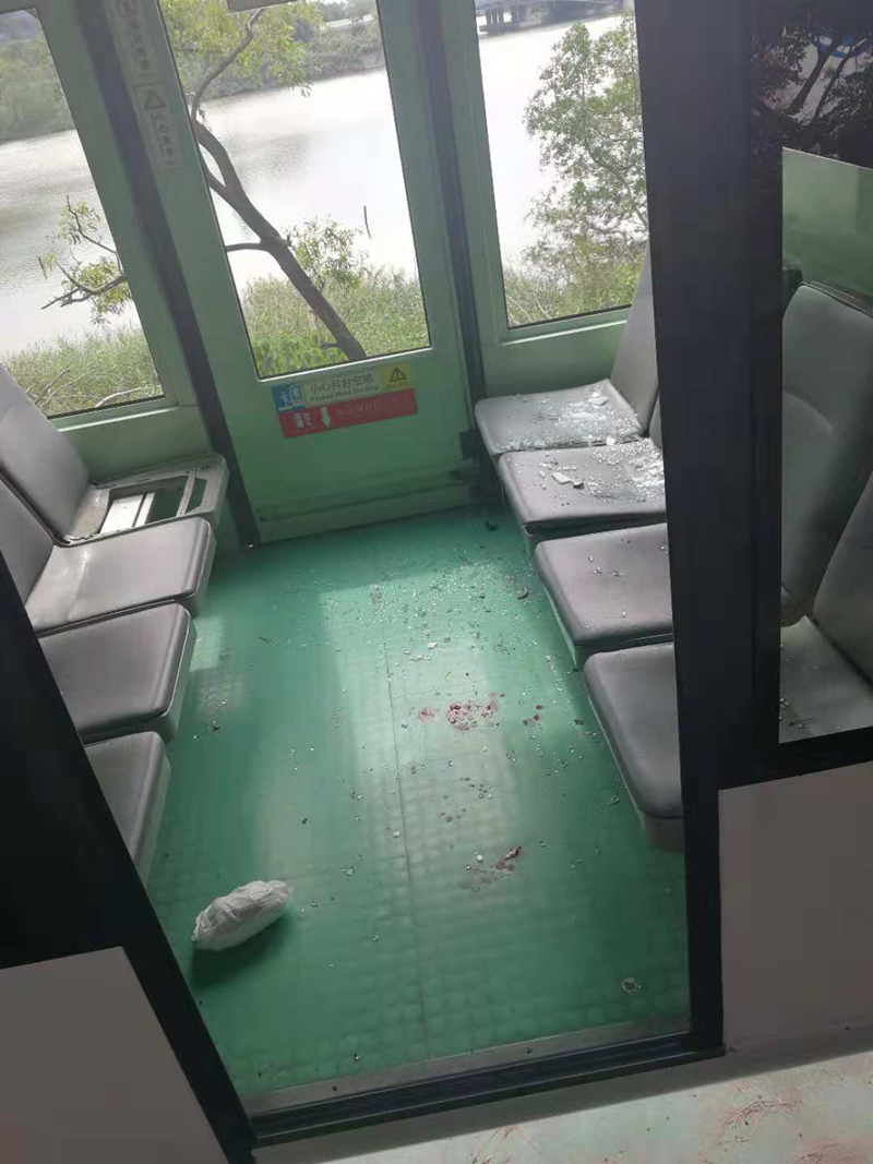 目擊者提供的照片顯示,歡樂(lè)干線車(chē)廂地板上留下了受傷者的血跡