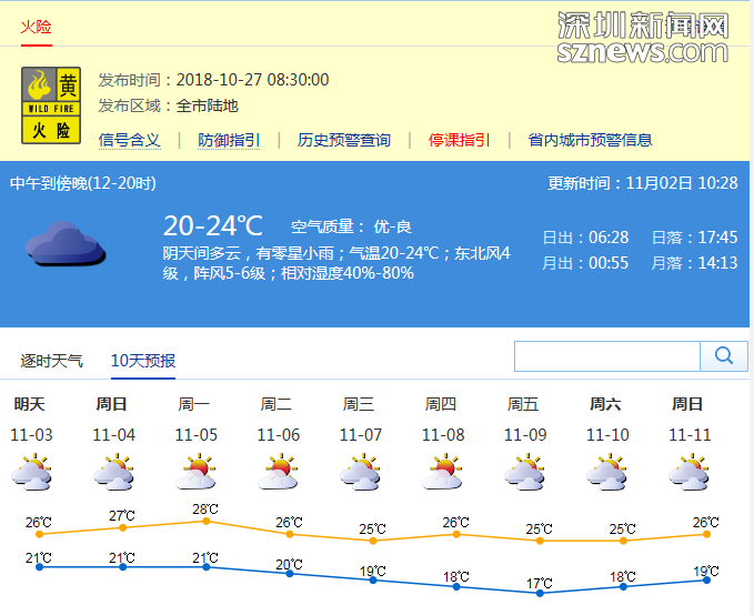 市氣象局發(fā)布未來十天天氣預(yù)報(數(shù)據(jù)更新于11月02日10時28分)