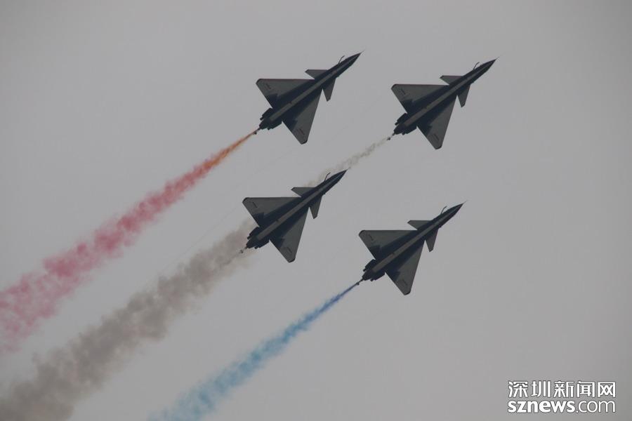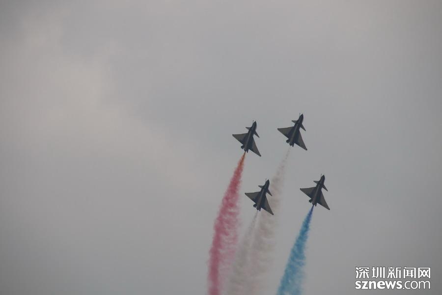 “八一”飛行表演隊的隊員則駕駛殲-10,展示了單機特技表演、六機編隊通場……戰(zhàn)機拉著彩煙,為觀眾帶來精彩的空中芭蕾。