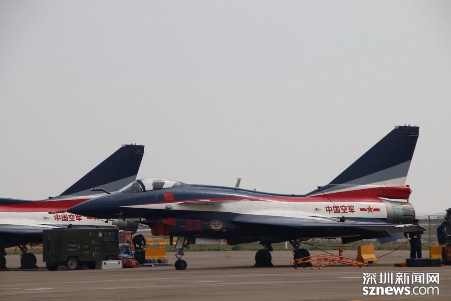 完成飛行表演,在停機坪上的殲-10。