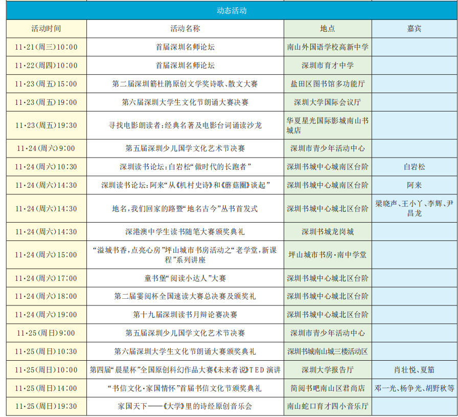 第十九屆深圳讀書月精彩活動預告(11·19-11·25)