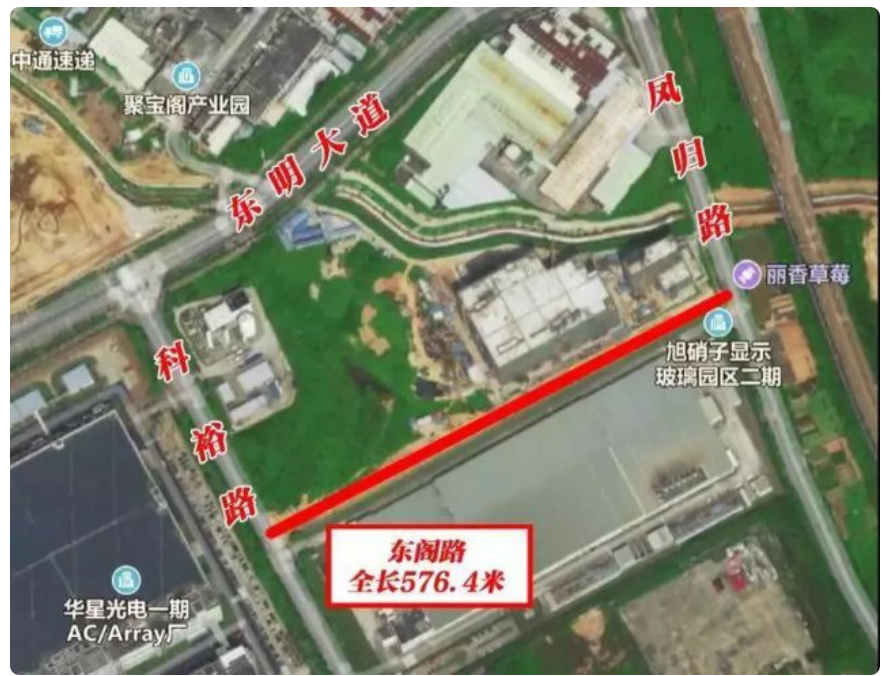 東閣路全長576.4米,道路紅線寬19米,是一條城市支路,機(jī)動(dòng)車道為雙向兩車道。東閣路西接科裕路(支路),東接鳳歸路(支路),周邊有華星光電、歐菲光、旭硝子等企業(yè)。目前,東閣路已完成瀝青路面鋪設(shè)和標(biāo)線施工,驗(yàn)收合格后就可以通車了。正式通車后將聯(lián)通周邊路網(wǎng),方便鳳歸路和科裕路周邊居民和企業(yè)出行交流,從鳳歸路到科裕路,不必兜個(gè)大圈子,只需直走576.4米就可以到達(dá)。