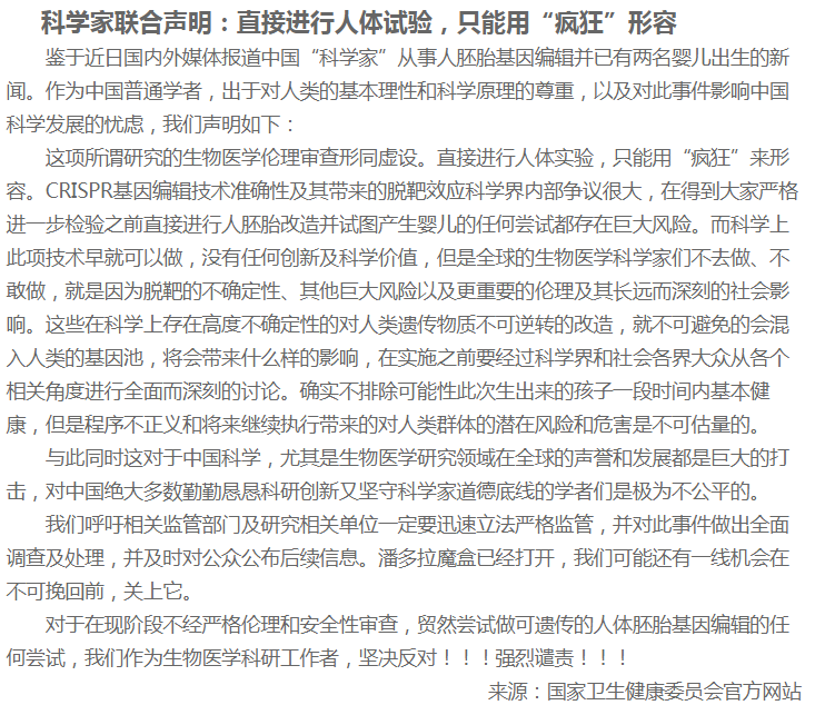 據(jù)了解,事情的起因是賀建奎在第二屆國(guó)際人類基因組編輯峰會(huì)召開(kāi)前一天宣布,一對(duì)名為露露和娜娜的基因編輯嬰兒于11月在中國(guó)誕生。
