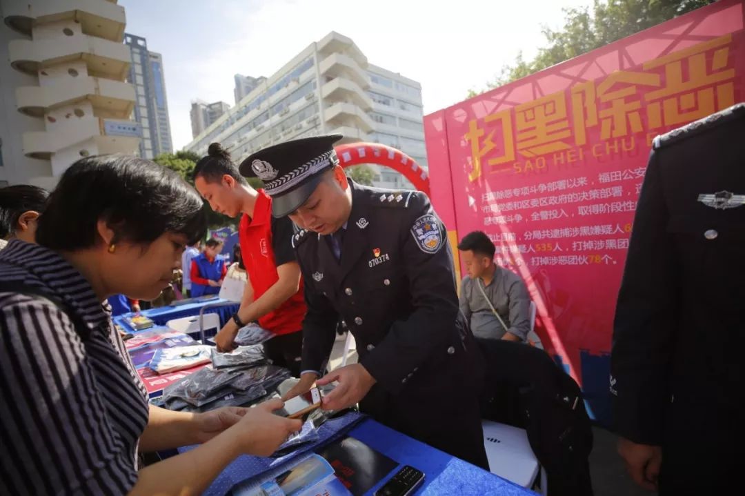 深圳市公安局指揮部有獎舉報(bào)中心聯(lián)合福田公安分局開展“有獎舉報(bào)”宣傳活動,民警現(xiàn)場發(fā)放宣傳資料,積極發(fā)動群眾踴躍舉報(bào),不斷提高群眾對掃黑除惡專項(xiàng)斗爭的知曉度,市民咨詢不斷,形成了對黑惡勢力“零容忍”和人人喊打的良好氛圍。
