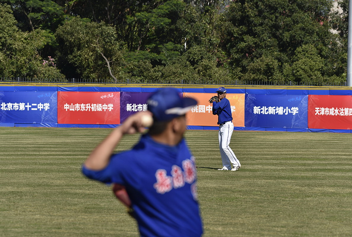 來(lái)自臺(tái)灣的嘉南藥大的選手在做賽前訓(xùn)練