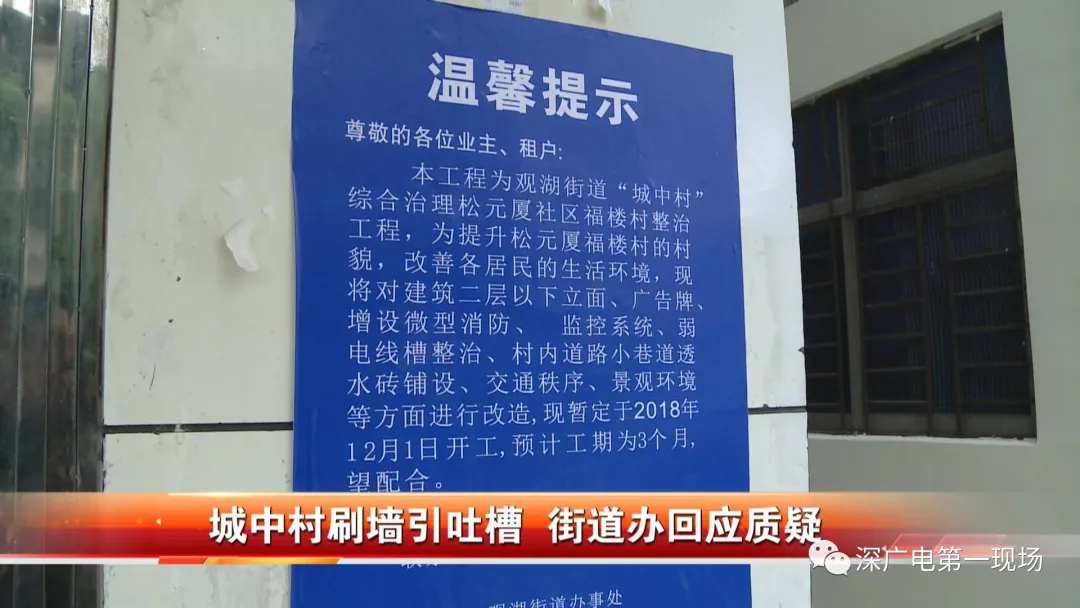 據(jù)介紹,這次對城中村改造,主要針對那些臟亂差的城中村,全部由政府財政出資,實(shí)施凈化美化。觀湖街道辦所管轄的29個城中村,都要在近三年內(nèi),實(shí)施美化改造工程。