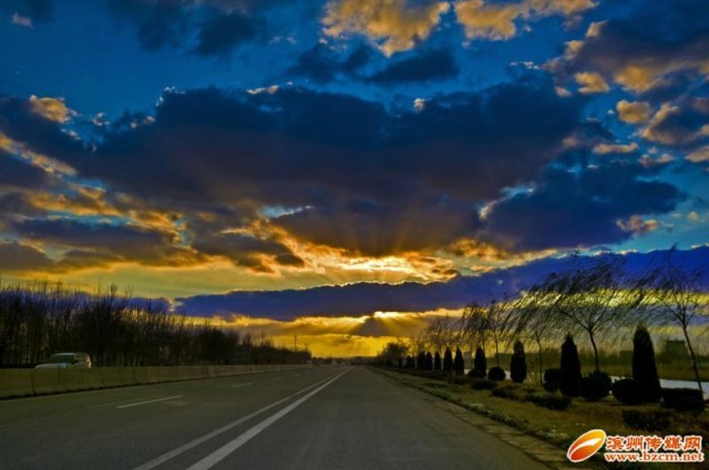 霞光映襯下的公路分外迷人