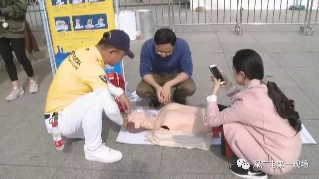 在市民中心廣場的另一側(cè),還有賽場醫(yī)療救援志愿者,在地面上擺出模型,為參賽選手普及心肺復(fù)蘇等方面的急救知識(shí)。在明天賽事進(jìn)行期間,多組救援團(tuán)隊(duì)也將在現(xiàn)場為參賽者提供緊急救援。