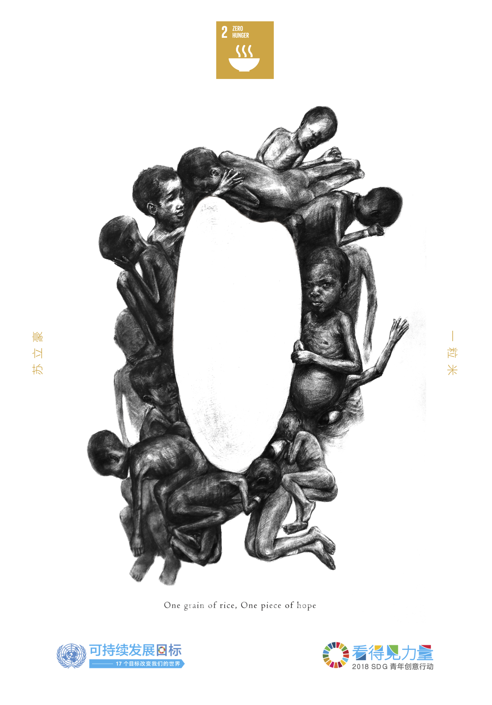 作品解釋 /一粒米對于挨餓的人來說,就是一點希望,我們不經意的浪費就是在削減他們的希望。