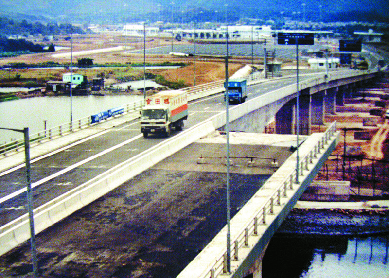 1989年12月26日皇崗口岸開通時的第一輛入境貨柜車,當時落馬洲大橋只建成一半。黃國春攝