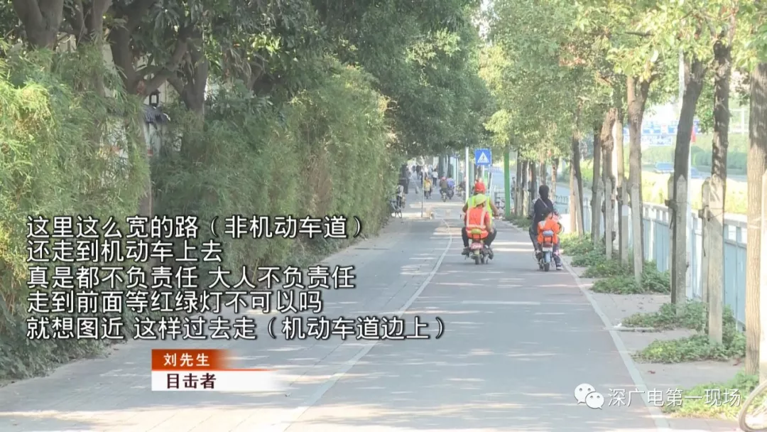 今天上午記者來(lái)到了事發(fā)現(xiàn)場(chǎng),寶安大道和新安六路的交匯口。在現(xiàn)場(chǎng),電動(dòng)車(chē)違規(guī)現(xiàn)象嚴(yán)重:走機(jī)動(dòng)車(chē)道、不戴頭盔、違規(guī)載人、不等紅燈的現(xiàn)象比比皆是,甚至出現(xiàn)了逆行的情況。雖然設(shè)置了非機(jī)動(dòng)車(chē)道,但使用者寥寥無(wú)幾。