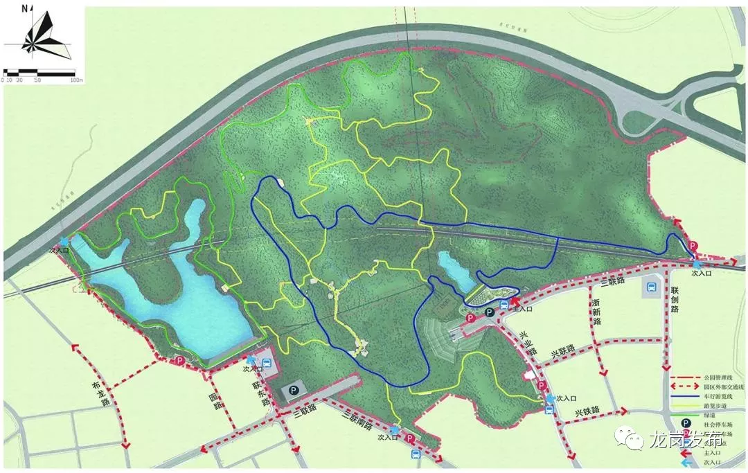 公園占地面積為161.79公頃,以自然山地、叢林、水庫湖泊等現(xiàn)狀元素為景觀基底,以保護(hù)、優(yōu)化及恢復(fù)自然生態(tài)系統(tǒng)為前提,集生態(tài)、運(yùn)動(dòng)休閑、文教于一體的市屬郊野公園。
