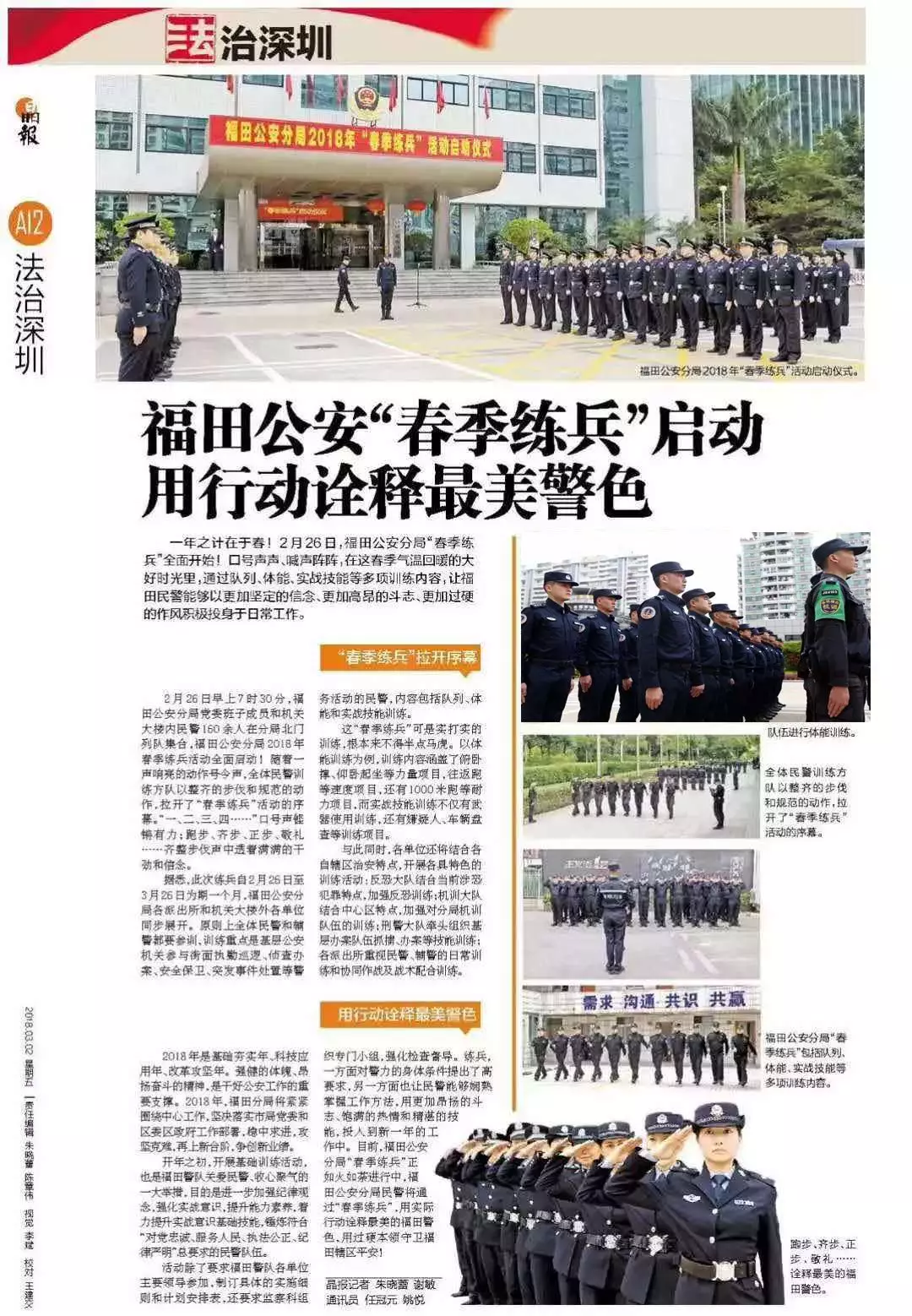 ★★強健的體魄、昂揚奮斗的精神,是干好公安工作的重要支撐。2月26日早上,福田分局2018年春季練兵全面啟動,全體民警和輔警參加,重點訓(xùn)練隊列、體能和實戰(zhàn)技能。