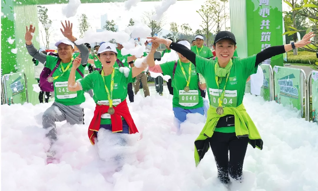 來自荔灣社區(qū)的劉先生,是一位跑步愛好者,參加了多場(chǎng)半馬和全馬比賽,這是他第一次參加“生態(tài)歡樂跑”,對(duì)此他贊不絕口:“跑道平坦舒適,兩側(cè)風(fēng)景絕美,拉拉隊(duì)、補(bǔ)給站非常給力;還有生態(tài)和環(huán)保的知識(shí)闖關(guān)答題,讓我知道原來街道在生態(tài)和黨建方面做了這么多卓有成效的工作;集體闖關(guān)跳繩活動(dòng),更是歷練了團(tuán)隊(duì)的力量。這些安排讓我享受到了全民健身的樂趣!”