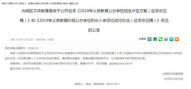 深圳新聞網(wǎng)2019年1月9日訊(記者 劉婷)近日,光明區(qū)文體教育局發(fā)布《光明區(qū)2019年義務(wù)教育階段公辦學(xué)位積分入學(xué)派位試行辦法(征求意見稿)》(以下簡稱《征求意見稿》)。