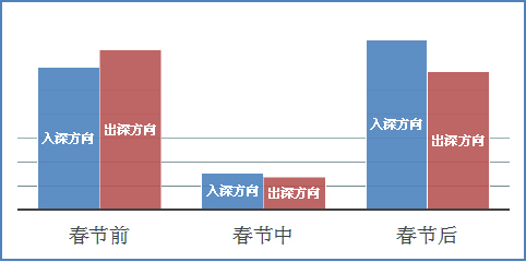 我們把整個春運期間分為三段:春節(jié)前(春運開始至大年二十九的25天)、春節(jié)中(七天假期)、春節(jié)后(初七至春運結(jié)束的25天)。