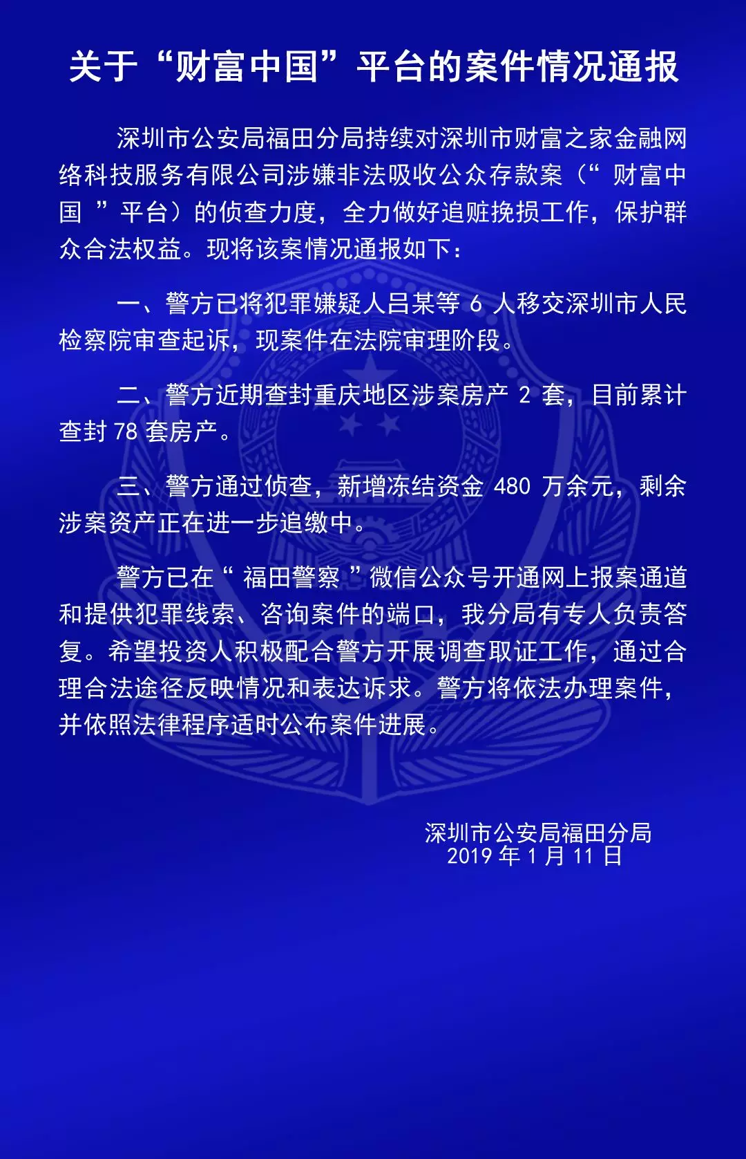 福田公安通報(bào)六家平臺(tái)涉嫌非法吸收公眾存款案的情況