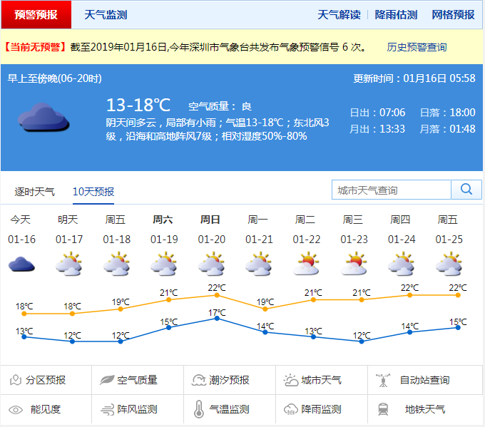 深圳新聞網(wǎng)2019年1月16日訊(記者 陳婕)記者從深圳市氣象局了解到,16日受冷空氣和切變線影響,陰天有分散小雨,天氣顯著轉(zhuǎn)涼,沿海和高地陣風(fēng)6-7級(jí);17-18日多云,可見陽光,早晚較冷;19-20日受偏東氣流影響,陰天間多云,間中有分散小雨。21日陰天有小雨轉(zhuǎn)多云,氣溫下降;22日起天氣晴朗干燥。