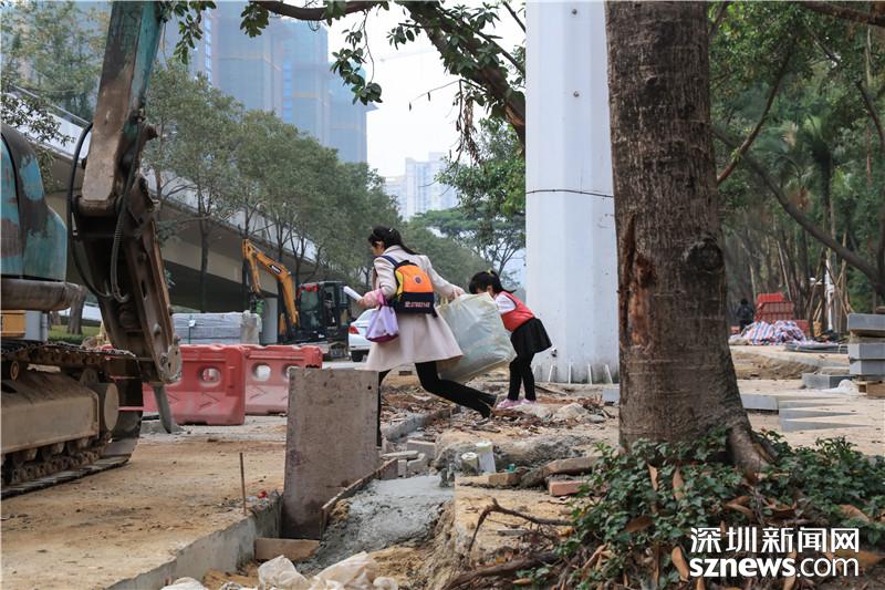 由于寶安大道相關(guān)路段施工,不少市民戴口罩出行