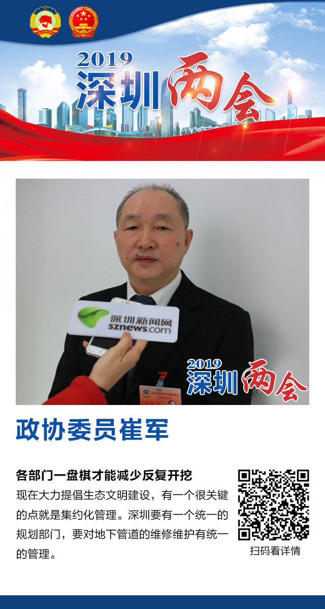 深圳新聞網(wǎng)2019年1月17日訊 深圳市政協(xié)六屆五次會(huì)議1月16日開幕,記者就全市范圍內(nèi)出現(xiàn)的道路反復(fù)開挖向政協(xié)委員們征求解決良方,委員們表示,在(道路反復(fù)開挖)這件事情上,我們每個(gè)人都是受害者。只有各部門一盤棋,讓規(guī)劃更有前瞻性,讓城市建設(shè)慢下來(lái),才能解決問(wèn)題,減少給市民生活帶來(lái)的各種不便。下面讓我們一起來(lái)看看委員們的觀點(diǎn)。