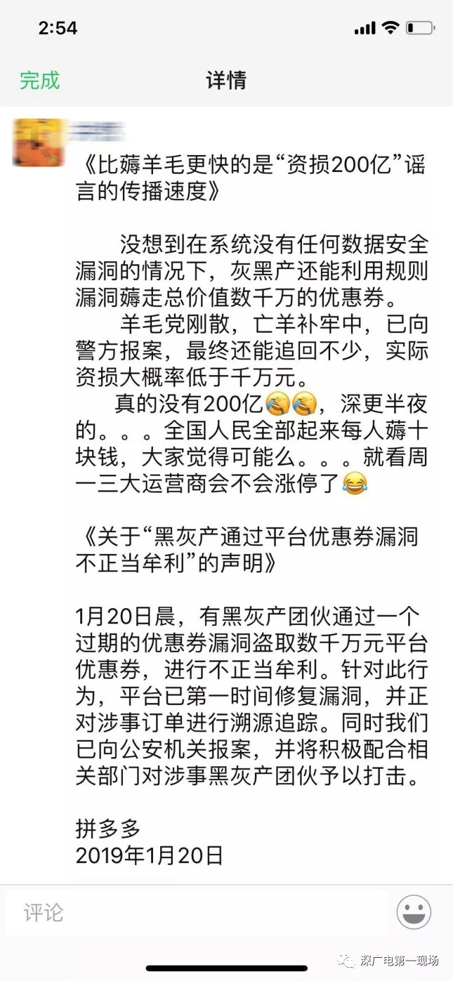 針對此行為,平臺已第一時間修復(fù)漏洞,并正對涉事訂單進行溯源追蹤。同時拼多多已向公安機關(guān)報案,并將積極配合相關(guān)部門對涉事黑灰產(chǎn)團伙予以打擊。