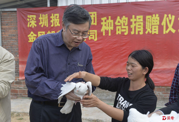 根據(jù)報(bào)業(yè)集團(tuán)“因戶(hù)制宜一戶(hù)一策”“一個(gè)黨支部結(jié)對(duì)一戶(hù)貧困戶(hù)”的安排,鐘仿明選擇養(yǎng)鴿脫貧,兩年多來(lái),集團(tuán)金風(fēng)帆物業(yè)公司共計(jì)為他送來(lái)四批480對(duì)種鴿,還請(qǐng)來(lái)深圳光明農(nóng)場(chǎng)的技術(shù)員,對(duì)他進(jìn)行技術(shù)培訓(xùn)?!?80對(duì)種鴿全部成活!”1月20日下午,看到親自來(lái)送種鴿的陳寅等報(bào)業(yè)集團(tuán)領(lǐng)導(dǎo),鐘仿明拿出一面錦旗,非常激動(dòng)地說(shuō):“感謝黨的好政策,感謝深圳報(bào)業(yè)集團(tuán)的真心幫扶!”