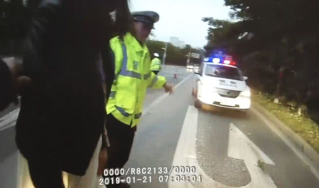 交警:來,酒精測試。最后一次機(jī)會,小姐。我現(xiàn)在警告你,再不配合立即去抽血,不要在這里裝,一堆人服侍你,如果你想上頭條,我配合你。