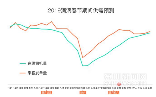 據(jù)滴滴大數(shù)據(jù)預測顯示,今年春節(jié)期間(1月28日-2月10日)全國平均打車成功率下降20%,全國范圍內將出現(xiàn)空車較少,等車時間較長的現(xiàn)象,其中除夕至正月初二是打車最難的三天,主要原因是春節(jié)出行需求增多,但大部分司機也選擇休假與家人團聚,進而造成較大的供需失衡。