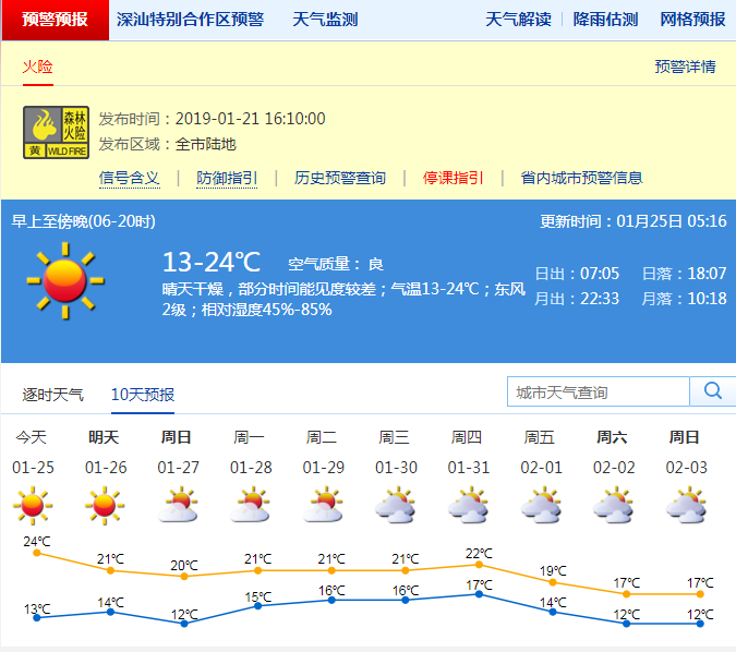 值得注意的是,深圳市24-28日,持續(xù)晴天干燥,晝夜溫差大,白天溫暖,部分時(shí)間有輕微到輕度霾,其中26-27日氣溫小幅下降;展望29-30日多云,濕度上升。