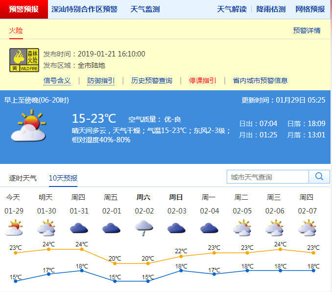 氣象局提醒市民,未來三天深圳晴朗干燥,是春節(jié)前大掃除和洗曬的好時機;最近空氣持續(xù)干燥,森林火險黃色預(yù)警生效中,市民需注意用火安全,外出游玩不帶火種上山;寒冷天氣需嚴(yán)防一氧化碳中毒,浴室應(yīng)注意通風(fēng)良好,注意燃?xì)鉄崴魇褂冒踩瑖?yán)禁使用直排式和煙道式熱水器。