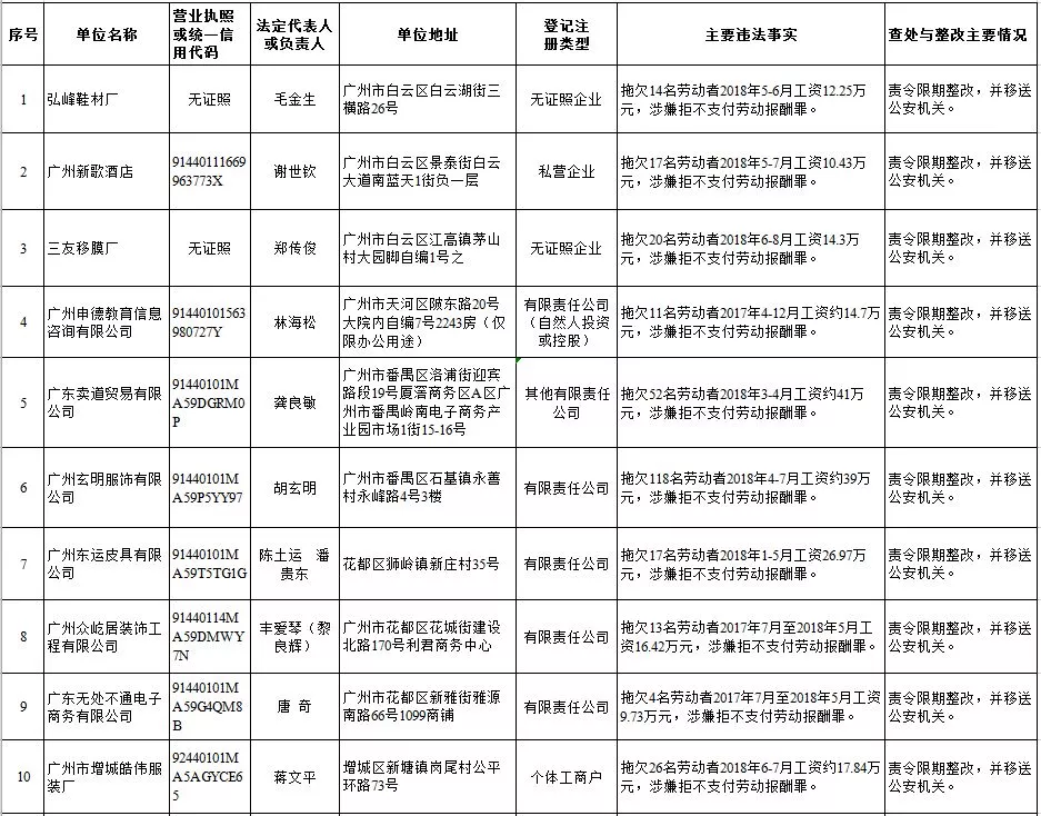 深圳新聞網(wǎng)2019年1月29日訊 (記者 劉婷)據(jù)廣東發(fā)布消息,省人社廳近日公布,2019年第一批用人單位重大勞動(dòng)保障違法行為名單。到底是哪些企業(yè)在惡意欠薪?這些“老賴(lài)”企業(yè)的營(yíng)業(yè)執(zhí)照、地址、法人等等超全信息都在這!