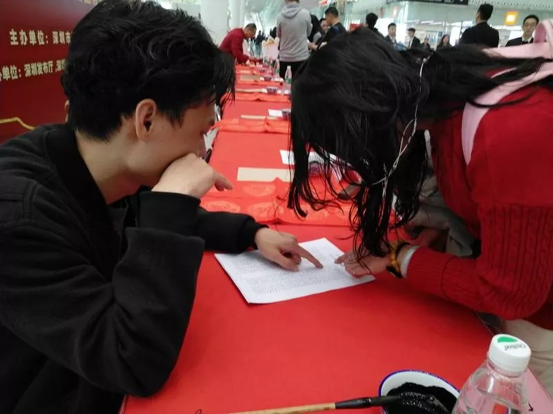 現(xiàn)場(chǎng)寫春聯(lián)的活動(dòng)時(shí)很心動(dòng),