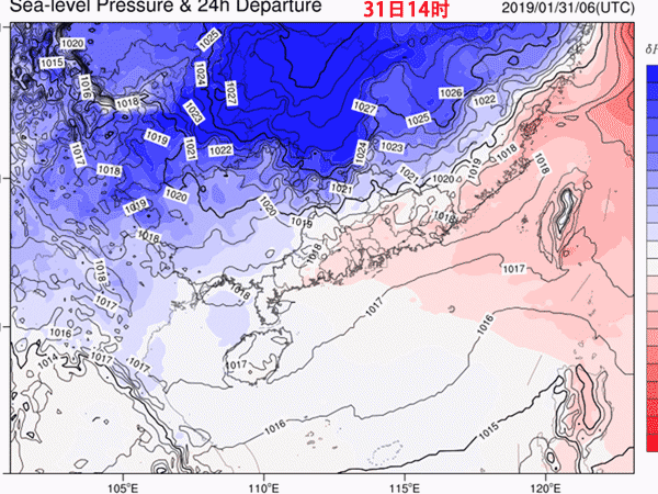 31日 -1日冷空氣示意圖(東移為主)▲