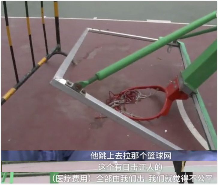 何先生認(rèn)為造成這起事故的主要原因是施工方的疏忽,未將籃球架有效固定,因為倒塌的這個籃球架底座并沒有打鋼釘,填充物也僅有兩塊水泥磚,并不牢固。對此,球場施工方表示,工程驗收時"百分百 OK",愿意出于人道主義關(guān)懷給予傷者適當(dāng)補(bǔ)償,但拒絕支付全部醫(yī)療費(fèi),因為"他跳上去拉那個籃球網(wǎng),有目擊者的"。