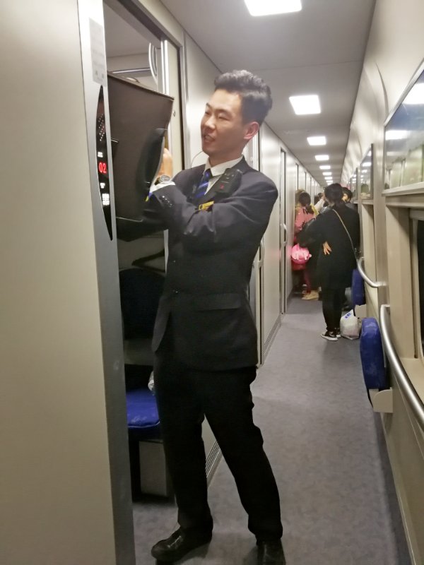 乘務(wù)組針對旅客不同需求進行重點服務(wù),用微笑拉進距離。旅客上下車期間,認真檢查設(shè)備設(shè)施狀態(tài),為旅客提供最舒適的乘車環(huán)境;