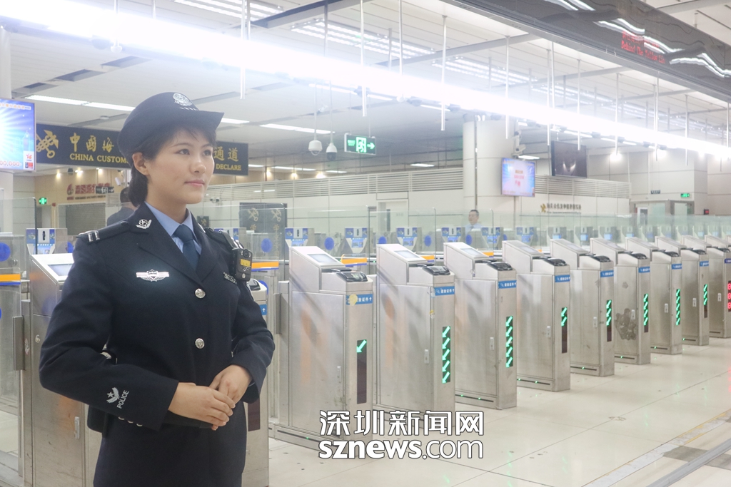2月3日2:00,皇崗邊檢站十三隊(duì)分隊(duì)長云娜在皇崗口岸出境大廳自助查驗(yàn)通道監(jiān)護(hù)(通訊員 黃俊生攝)
