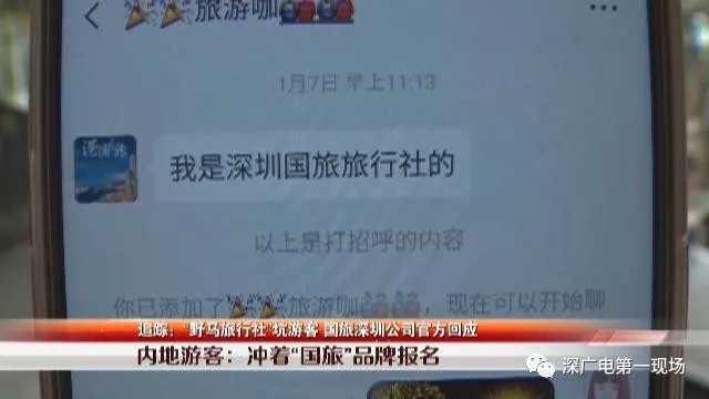 深圳市消費(fèi)者委員會(huì)楊秀鋒:接到消費(fèi)者投訴之后呢,我們跟消費(fèi)者、市旅游局、旅游行業(yè)協(xié)會(huì),還深圳國(guó)旅進(jìn)行了溝通。深圳國(guó)旅確定這家消費(fèi)者加入團(tuán)的公司,是一家野馬旅行社。