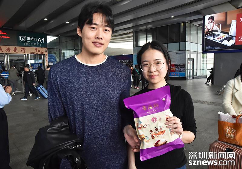 來自昆明的劉小姐這次帶了云南特產(chǎn)鮮花餅回來,送給來接她的男朋友以及公司的同事。