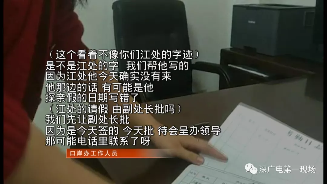 但暗訪發(fā)現(xiàn),也有個(gè)別缺崗人員未按照正常流程履行報(bào)假手續(xù)。2月11號(hào)上午9點(diǎn)40分,市紀(jì)委暗訪組來(lái)到深圳市口岸辦公室,發(fā)現(xiàn)該單位到崗率良好,辦公秩序井然。但在暗訪檢查中發(fā)現(xiàn),本應(yīng)登記當(dāng)天在辦公室上班的口岸辦陸路二處處長(zhǎng)江某并不在辦公室,經(jīng)核對(duì)其請(qǐng)休假情況,其提交的休假報(bào)告是從2月12號(hào)開(kāi)始,但11號(hào),他人已經(jīng)沒(méi)有到崗。隨后,該處一名工作人員拿出了一份登記表,表上寫名該處長(zhǎng)今天補(bǔ)休。然而,領(lǐng)導(dǎo)簽字一欄并非單位主管或分管領(lǐng)導(dǎo),而是該處的一名副處長(zhǎng)。暗訪人員發(fā)現(xiàn)這份登記表是11號(hào)當(dāng)天才填寫的。