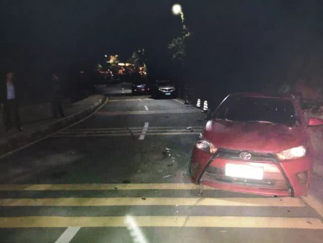 行駛了100米左右卻撞上了停在路邊的紅色小車,隔壁酒店的保安聞聲趕來,便報了警。