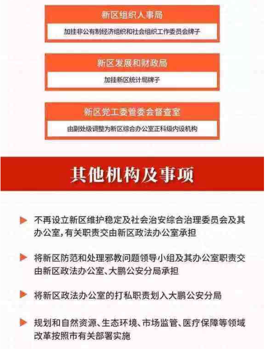 機(jī)構(gòu)改革后,大鵬新區(qū)共設(shè)置黨政機(jī)構(gòu)16個(gè)、群團(tuán)機(jī)構(gòu)1個(gè)、