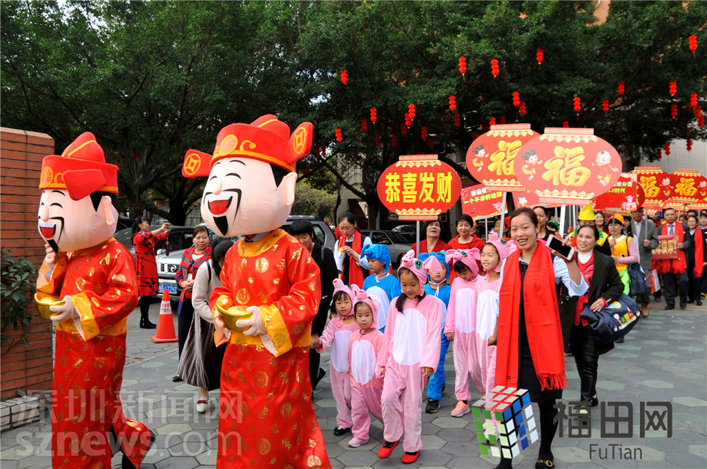 巡游方陣由梅林一村村民、梅林一村義工、梅林一村老年協(xié)會(huì)、梅林一村管理處員工組成。為了此次大年初一的大巡游,他們已經(jīng)提前一個(gè)多月進(jìn)行排練了。據(jù)介紹,龐大的巡游隊(duì)伍由裝飾得美倫美奐的彩車開道,車上有財(cái)神爺坐陣,巡游的途中會(huì)給圍觀的村民送去象征生活甜蜜的賀年糖果。緊跟隨后的是:安塞腰鼓和喜慶秧歌方陣、舞龍和醒獅方陣、威風(fēng)鑼鼓方陣、金豬賀年方陣、居民迎春方陣、環(huán)保方陣、歡樂員工方陣。