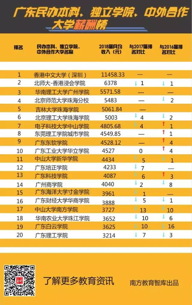 ▲廣東民辦本科、獨立學(xué)院、中外合作大學(xué)薪酬20強,港中文(深圳)成全省首個平均月薪過萬高校。