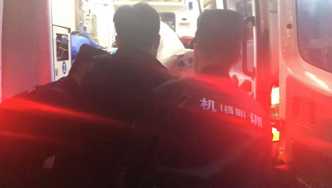 救護(hù)車趕到現(xiàn)場,隊員們爭分奪秒將男子抬上救護(hù)車。