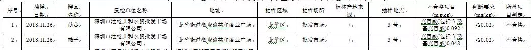 抽樣地點:深圳市油松共和農貿批發(fā)市場有限公司