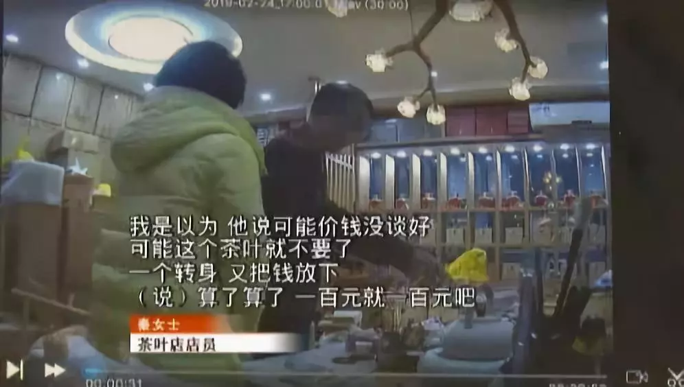 據(jù)小娟回憶,此時(shí)顧客讓她到門口拿塑料袋裝茶葉。而秦女士已經(jīng)拿好了茶葉,回到了這位顧客的身邊。秦女士說,這名顧客特意問她,這個(gè)茶葉價(jià)錢是不是80?她回答不是,然后顧客就說不要了,但是一轉(zhuǎn)身又說100塊就100塊吧。