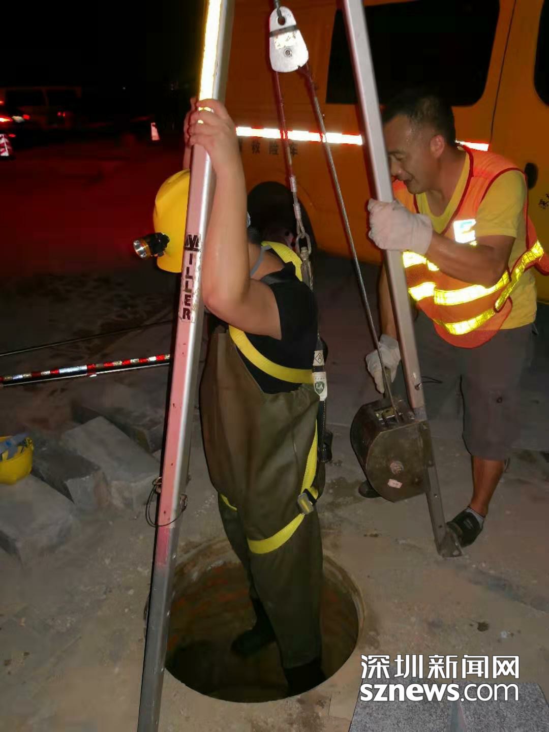 深圳的夏天很長(zhǎng),隨時(shí)趕上用水高峰,加上白天天氣炎熱,這種下井摸排通常在午夜進(jìn)行。