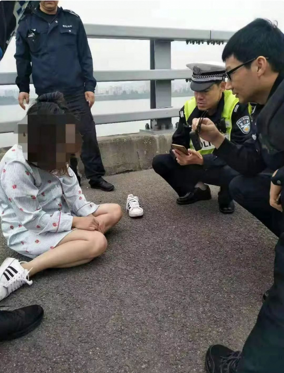 3月4日,深圳交警在沿江高速北行西鄉(xiāng)段救下了一名坐在高速公路護(hù)欄上準(zhǔn)備跳橋的女子