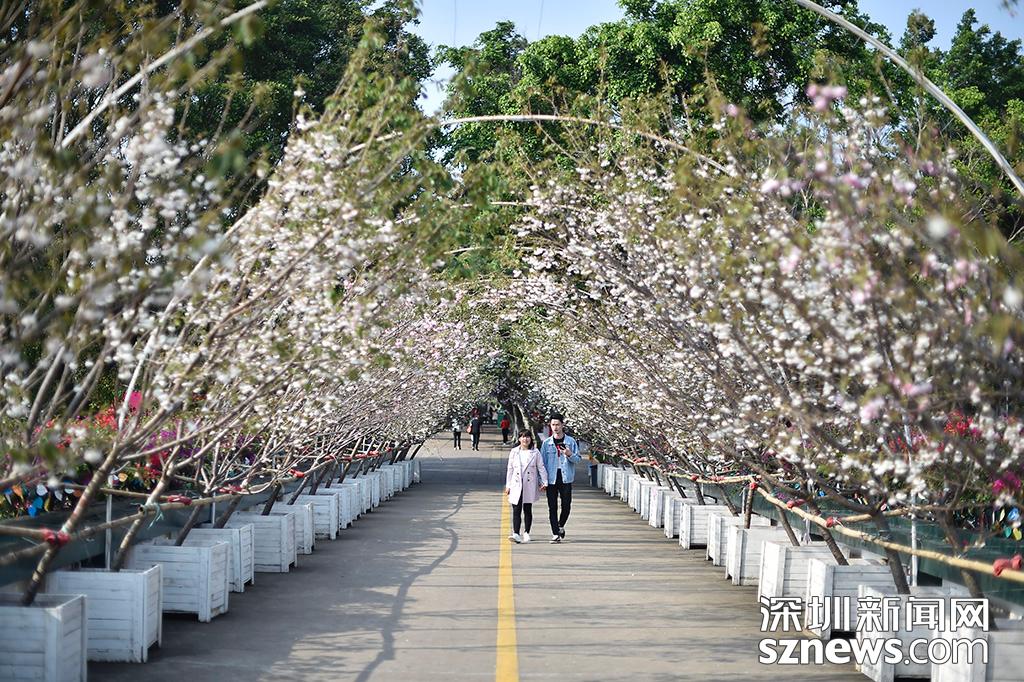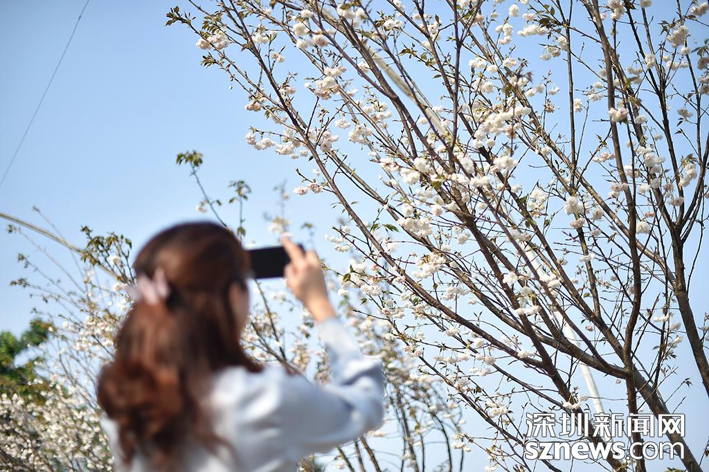 深圳新聞網(wǎng)3月12日訊 (記者 楊浩翰 鐘鴻冰)春雨喚醒了深圳的繁花,“流浪的太陽”回歸后,3月12日的深圳人沐浴在陽光與花海中。在觀瀾生態(tài)體育園,1000多株櫻花所打造的“櫻花大道”更是成為不少游客“打卡”處。