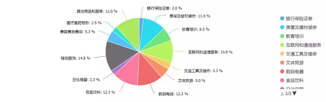 在調(diào)查的行業(yè)中,受訪者普遍反映消費侵權(quán)主要集中在鞋帽服飾、數(shù)碼電器、食品飲料、房屋及建材裝修、互聯(lián)網(wǎng)和通訊服務行業(yè),這些行業(yè)的消費維權(quán)數(shù)據(jù)均超過10%,而鞋帽服飾行業(yè)的侵權(quán)行為最為常見,比例高達14.8%。